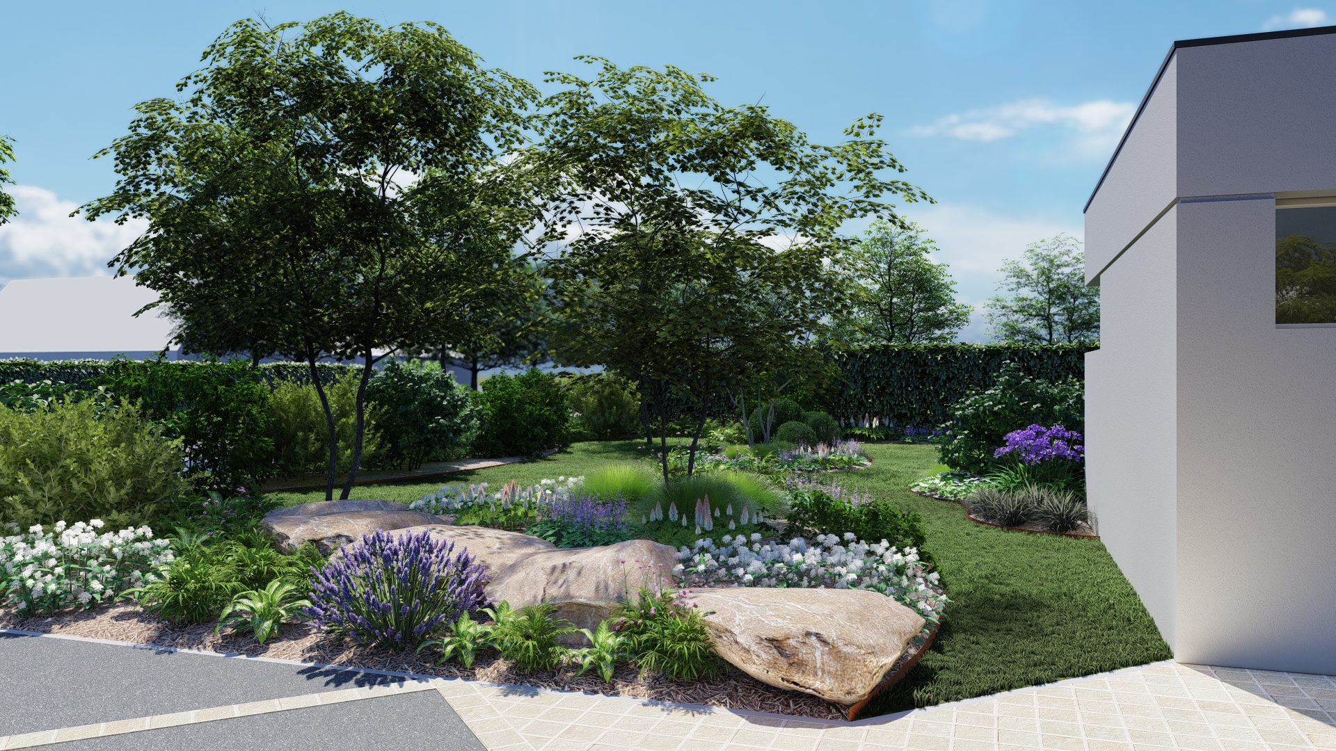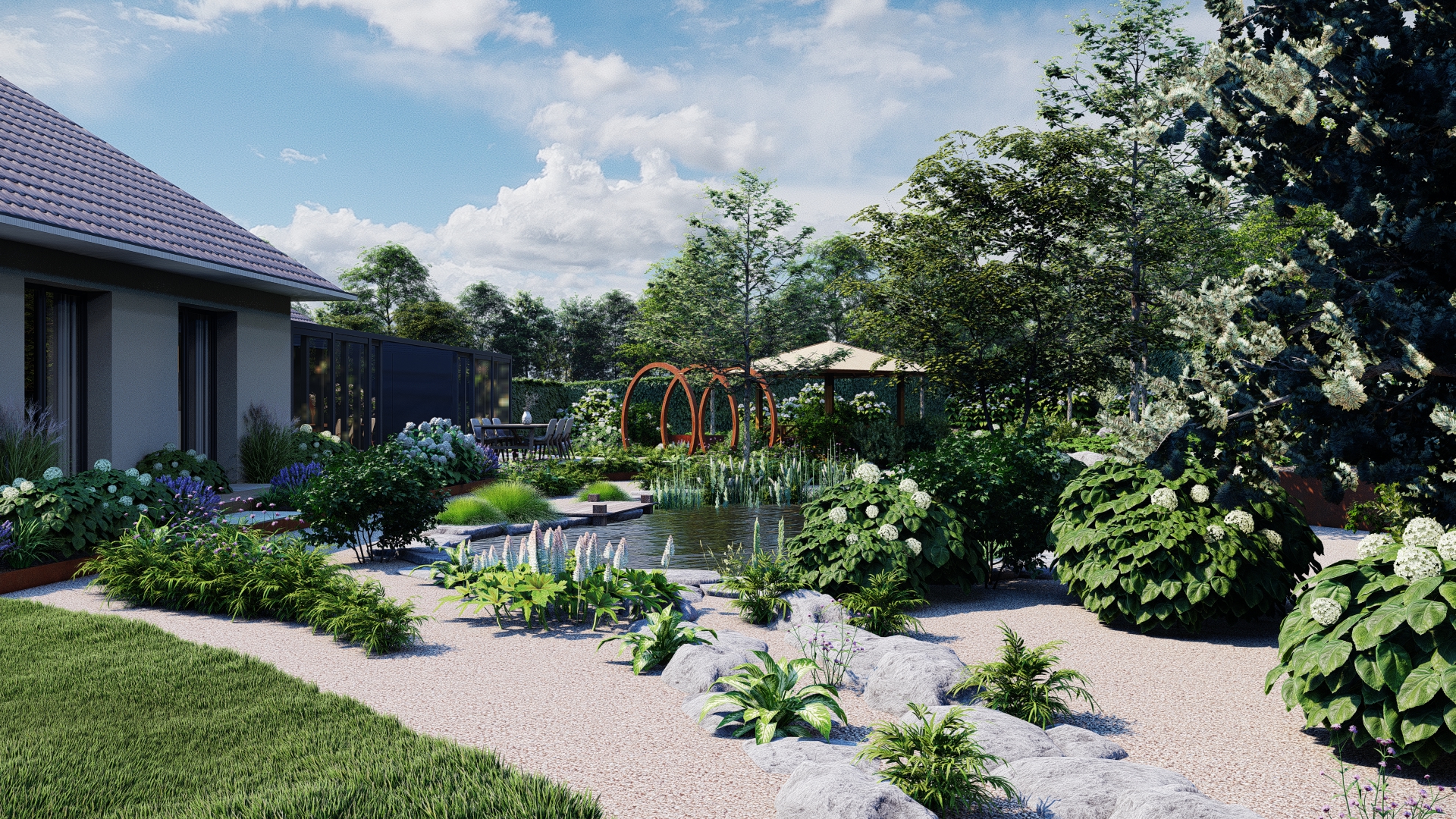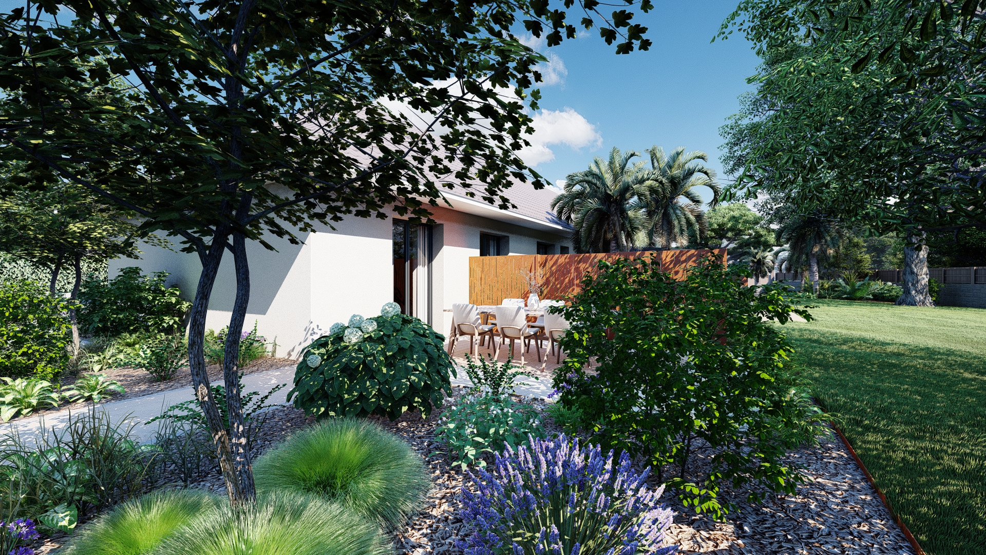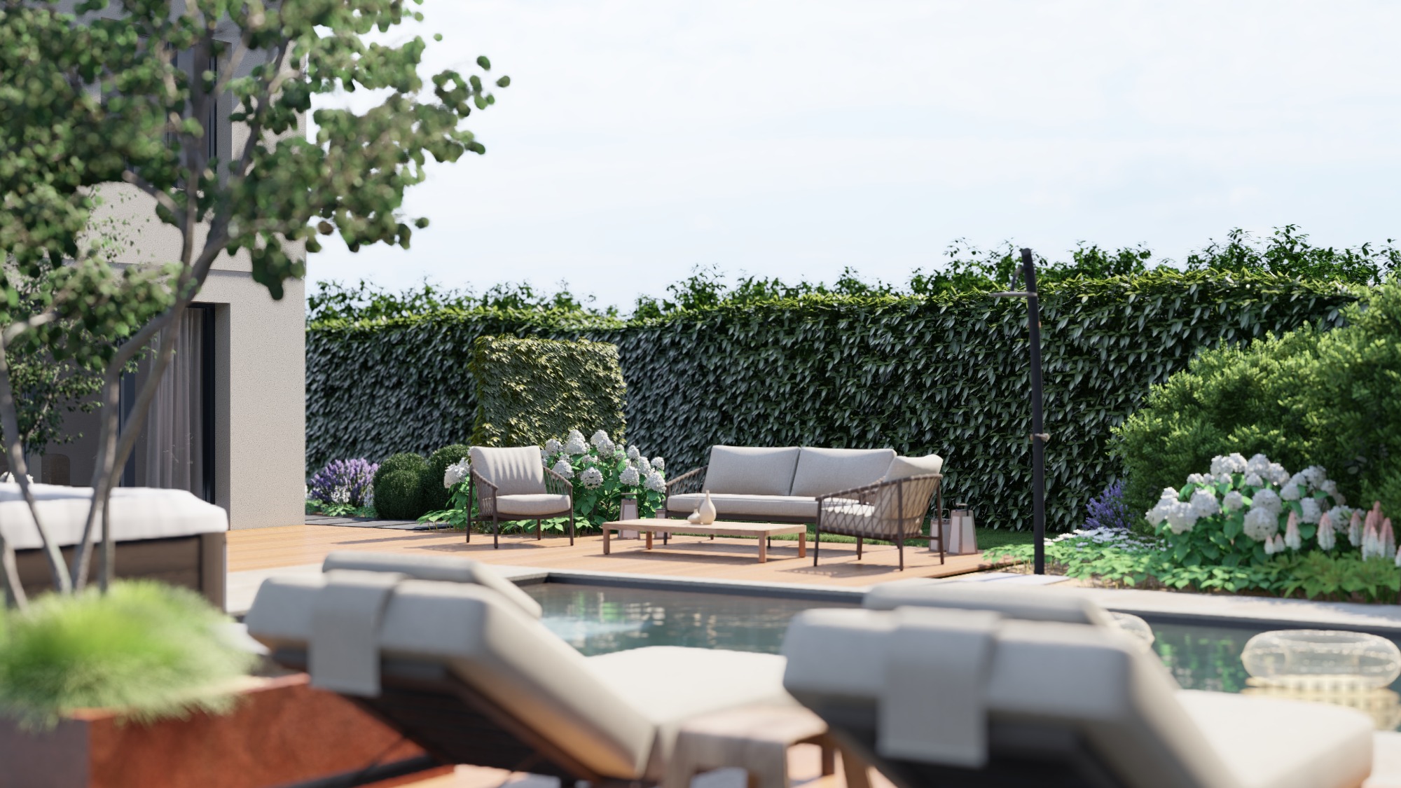 Projet d’aménagement paysager près de Rennes (35) illustrant les nombreuses possibilités d’un jardin conçu sur mesure.