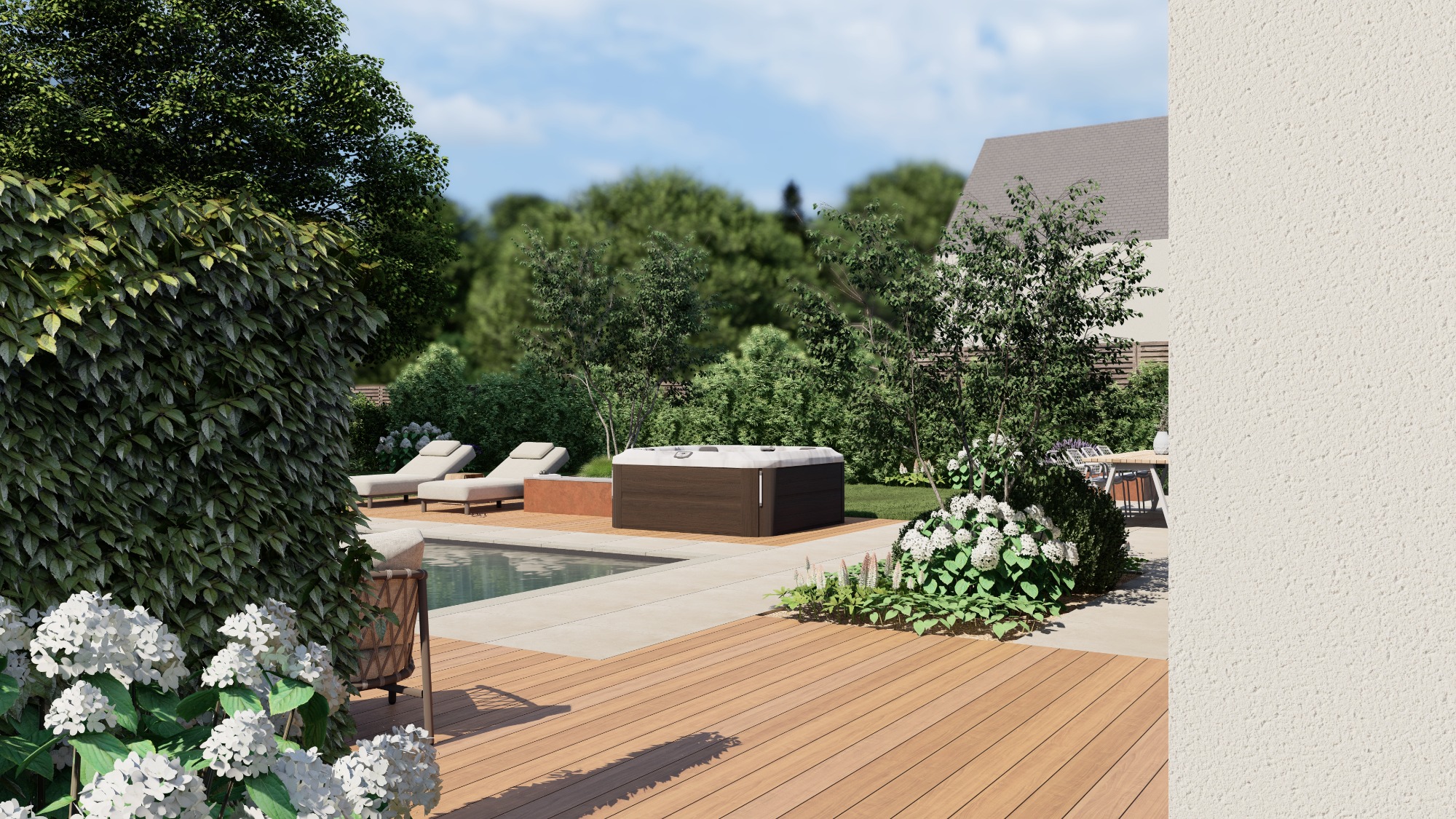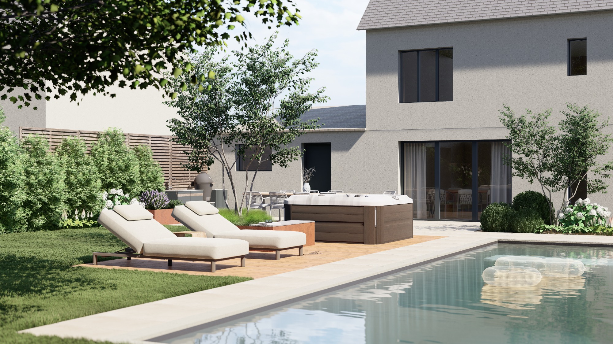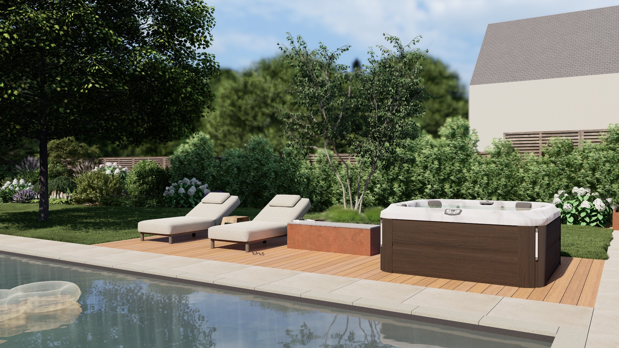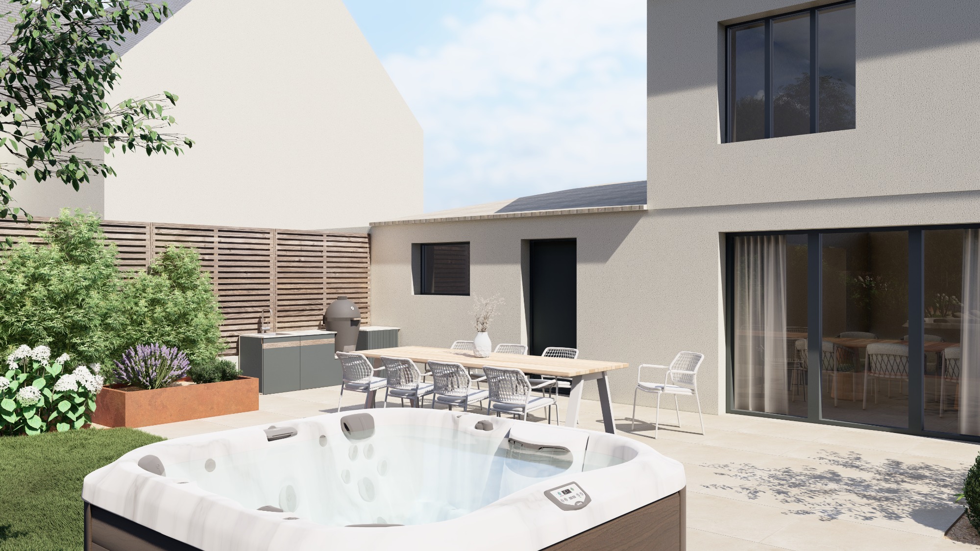 Un jacuzzi vient compléter l’ensemble afin d’offrir un espace de relaxation utilisable toute l’année.