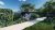 L’aménagement a été pensé pour structurer différents espaces de vie : un coin repas avec cuisine extérieure, un salon de jardin convivial et un espace détente avec bains de soleil autour d’une grande piscine.